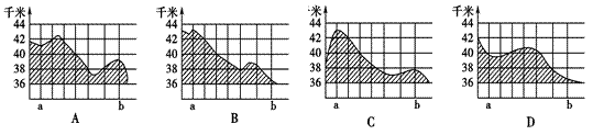 小题2:下列剖面图中,能正确表示a-b沿线地壳厚度变化趋势的是