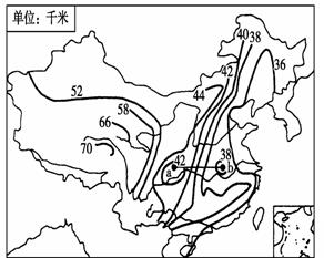 A.图中“40”等厚度线大约为我国季风区与非季风区的分界线