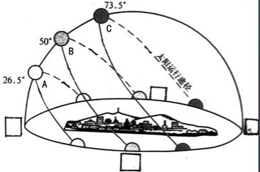 的太阳路径,其中白昼最长的是________;