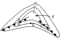 4、综合题 ??? 下图是锋面气旋图,图中P1、P2、P3分别表示三条等压线的气压值,图中F表示近地面风向,根据所学知识完成以下要求。