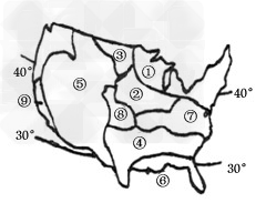 (2)⑨农业带所在地区的气候类型是????????? ???? ,该气候的特点是?????????????????? ?????????? 。