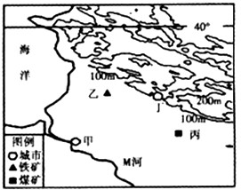 3、单选题 下图为大陆西岸虚拟地形图,M河的径流有明显季节变化。据此回答1~2题。