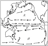 (4)图中A是?????????洋,B是?????????海。A、B间表层的洋流由______向_______流动,(填字母),