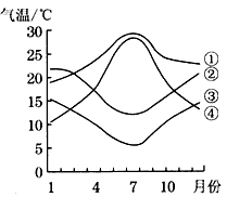 2、单选题 ??? 下图中甲地年降水量约为1000mm,乙地年降水量约为500mm。下图示意四地气温年内变化。据此完成1—3题。