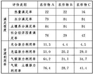 5、单选题 读我国某地区农业资源利用评价表(单位:%),回答问题。1.该地区发展农业生产的最主要限制性条件是2.该地区农业生产的最主要优势条件是3.该地区最适合种植的是