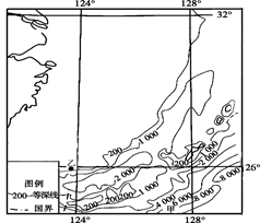 (1)根据材料二图中等深线判断,甲地的海底地形为?????????????,图中乙岛屿是我国的钓鱼岛,从海底地形说明是我国的领土。(3分)