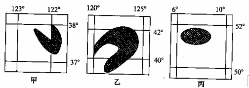 2、单选题  图中阴影部分表示世界和我国的工业区。读图判断第下列各题。