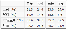 表?某企业在四地的成本结构比较