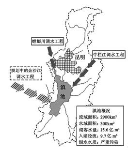 多选题 为缓解“昆明水少、滇池水脏”的问题,云南省已建成螳螂川、牛栏江调水工程,并规划建设金沙江调水工程,如图所示。读图回答题。