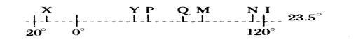 5、单选题 该图为世界地图上的一段纬线和三段经线,X点以西为海洋,N点以东为海洋(Ⅰ处有一岛屿),YP、QM为海洋,XY、PQ、MN为陆地。读图回答问 题。1.关于X地叙述,正确的是2.有关YP、QM海洋的叙述,正确的是