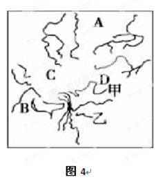 2、单选题 图4是“某大洲水系示意图”, 图中平均地势最高的点是