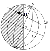 (3)顺着地球自转的方向,跨过L线,由黑夜进入白天,所以为晨线;A点为晨线与赤道的交点,地方时为6点;A位于赤道上,昼夜平分,昼长12小时。