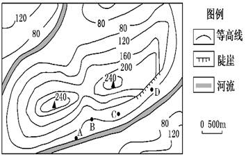 【小题1】图中A、B、C、D四个地点,最合适在活动期间搭帐篷宿营的是( )