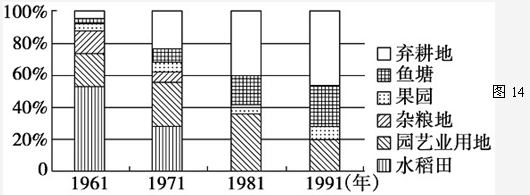 5、单选题 图14反映我国某地农业土地利用类型的变化情况,据此回答34~36题。