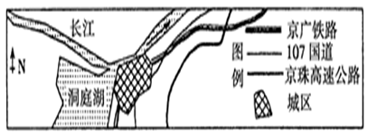 小题1:城市布局除考虑气候、地形、水源、资源等自然因素外,社会经济因素中的交通条件也成为重要的因素,根据图可知该区域有铁路、公路、水运,交通便利,故选B项。