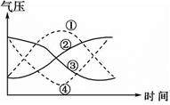 1.直接根据图示的气压变化过程可判断,①为暖锋过境;②为高压过境;③为冷锋过境;④为低压过境,只有高压控制时,盛行下沉气流,则天气晴朗。