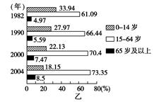 1、单选题 读“某省人口出生率、死亡率变化图”和“人口年龄结构变化图”,回答下列问题。?