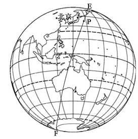 本题解析:1.根据题目叙述:图中EF线表示晨昏线,图中P点正值日出,所以P点位于晨线,则推断北半球昼短夜长, 太阳直射点位于南半球,图中南极圈未出现极昼现象,所以太阳直射点的纬度未到23°26′S,直射点纬度接近15°S;又因为晨线和赤道交点所在经线的地方时为6:00,地方时为6:00的经线的经度约为135°E,则直射点所在经线(地方时为12:00)的经度约为135°W。所以本题选择B选项。