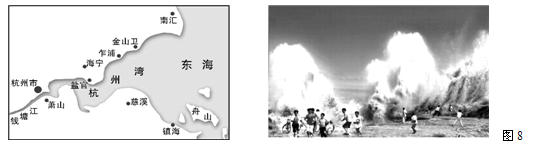 单选题 2007年8月2日16时30分许,杭州市发生钱塘江潮水卷人事件。读图,回答以下各题。1.钱塘潮被称为“天下第一潮”,其形成原因有