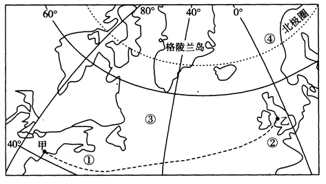 1、单选题 下图中格陵兰岛大部分终年被冰雪覆盖,甲、乙分别是北美洲和英国的港口,甲乙之间的虚线示意航线。十八世纪邮政长官富兰克林调查发现,沿北美洲和英国之间航线航行的邮船,往、返航程耗时明显不同。据此回答下列各题1.图中最可能出现冰山的海域在2.沿甲乙之间航线航行的邮船往、返时间不同主要受