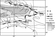 本题解析:本题考查我国的区域地理。从经纬度和图中地理事物信息可判断该区域是我国新疆的天山南北的部分区域,由于该区域气候干旱,降水较少,因此在进行城乡规划时,要充分考虑水源的丰歉程度。