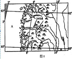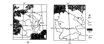 (2)甲国北部是欧洲最大的小麦产区,乙国北部却不适合发展种植业。简述乙国不适合发展种植业的原因。(6分)