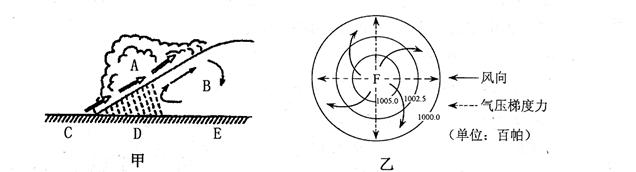 (2)甲图为 锋天气图。该锋面过境后,E地天气状况是 。