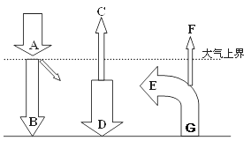 小题1:本题考查大气的受热过程和大气的保温作用。大气对太阳辐射的吸收:具有选择性(大气中的臭氧和氧原子主要吸收紫外线;水汽和二氧化碳主要吸收红外线),而对太阳辐射中能量最强的可见光吸收很少,太阳辐射不是大气的主要直接热源。地面辐射:为长波辐射,除少部分透过大气返回宇宙空间外,绝大部分为大气中的水汽和二氧化碳吸收,因此,地面是低层大气主要的直接热源。大气逆辐射:大气在增温的同时,也向外放出红外辐射,也是长波辐射,其大部分辐射向地面,称大气逆辐射,补充地面热量的损失,对地面起到了保温作用。图中G为地面辐射,为地球上近地面大气的主要的直接热源。所以本题选择D选项。