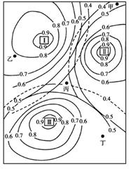 3、单选题 该图是“三个同等规模商业中心对周围顾客达成交易的概率的等值线分布图”,根据图中等值线分析,下列说法正确的是( )