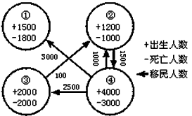 2、单选题 下图为人口相等的四城市某年人口变动资料,据图回答1~2题。