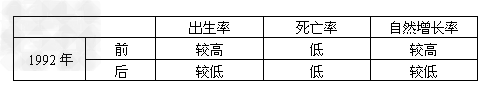 (1)对照表中数据补全下图曲线 (2)对比图中1992年前后我国人口增长状况,填写下表:?