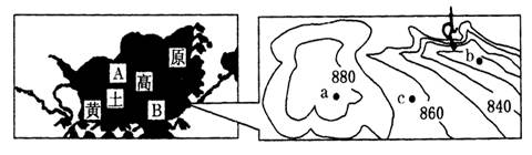5、综合题 读黄土高原区域简图及局部等高线图,完成下列问题(10分)