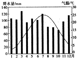 2、单选题 读“田纳西河流域某地降水量与气温变化图”,回答1—3题。