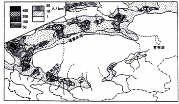 小题1:塔里木盆地周围有高山,山上的冰雪融水是河流的主要补给来源,山麓地带有绿洲,人口的主要分布地区,所以该地区人口成斑块状环形分布的主要原因有环盆地有大小不等不连续的绿洲。