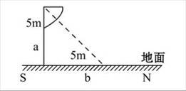 5、单选题 日影有日变化和年变化。某地一天中日影最短时,北京时间为12时40分,且为一年中正午日影最长,人们发现旗杆(a)与杆影(b)等长(如下图所示),回答问题。1.该地的地理坐标为2.此日前后,有可能