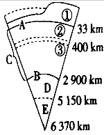 5、综合题 读图“地球内部构造图”,回答问题(14分):