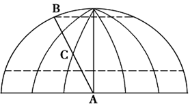 2、单选题 读西半球部分图,AB为晨昏线的一部分,C地的昼长为8小时。完成下题:?