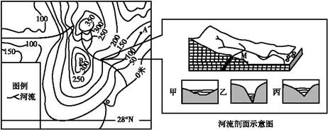 4、单选题 读“我国东南沿海某区域附近地区地形图和河流剖面示意图”,回答下列各题