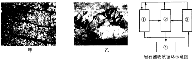 1、甲图中的五花石属沉积岩,该岩石应是“岩石圈物质循环图”中的