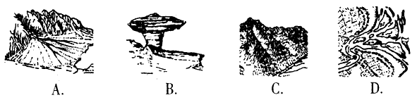 2、乙图中像刀刃一样的山脊与下图中哪一类地貌的成因相同