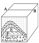 小题2:如图所示,背斜构造内E、F、G分别可能代表: