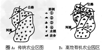 2.读图B,①②③④处布局大棚蔬菜、有机茶、花卉、饲料作物,下列安排合理的是