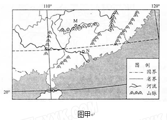 (2)图甲中M、N两地比较,受寒潮影响较小的?是____地,试分析原因。(8分)