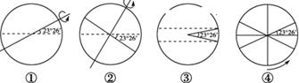 小题1:上图中,能正确表示黄赤交角的是