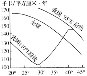 3、单选题 读“我国与全球同纬度太阳辐射总量对比图”,回答1~2题。