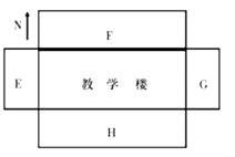 3、单选题 读下图,在某学校教学楼四周有E, F, G, H四块运动场,该学校体训队训练时间选择在日出一日落之间的某一时段。某一晴天,F、H两场地整天均无阴影区存在,且当地地方时10点前整个E场地都有阴影,有利于队员训练。据图,完成下列问题。
