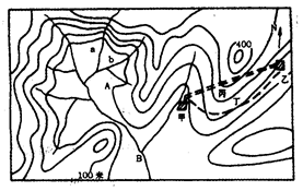 (2)b(1分),因为b处等高线稀疏 。(2分)