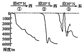 1、单选题 读大陆边缘向洋盆过渡的地形剖面示意图,回答1—2题。