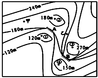 2、单选题 下图为广西某地等高线图,该地山青水秀,水流常年奔腾不息。读图完成下列小题。