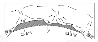 【小题3】图中赤道低压位置位于北半球,说明此时为北半球夏季。a地受副高控制盛行下沉气流,高温少雨,A说法正确。b地位于赤道的刚果盆地,为热带雨林气候,全年高温多雨,B说法正确。c地处于副高与赤道低压之间,受东北信风控制,多风沙,C说法正确。d地受副高控制,高温少雨,为干季,D说法不正确。